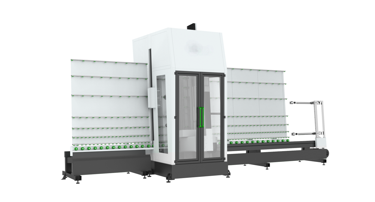 Designed in vertical direction which occupies less area and is convenient to load and unload glass sheet, especially for big architectural glass.